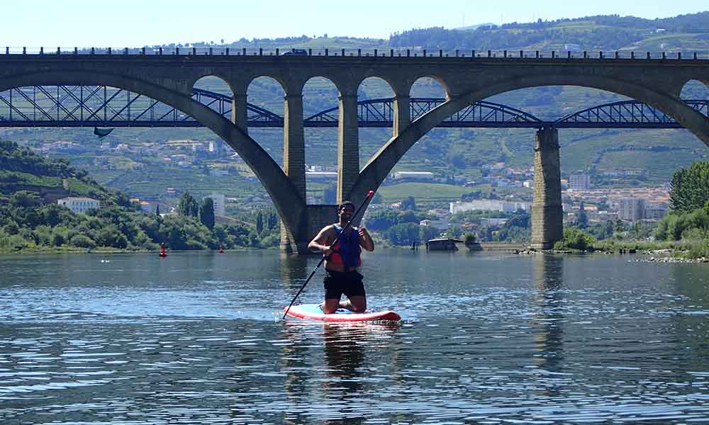 Descubra o prazer de passear no rio Douro numa prancha de Stand Up Paddle, tendo como cenário a cidade do Peso da Régua. Este programa prevê a passagem pelas três emblemáticas pontes do rio Douro, onde após a passagem por baixo da ponte Miguel Torga poderá alcançar a foz do rio Corgo. Oportunidade ideal para se refrescar e contemplar o belo cenário que o rodeia, treinando o equilíbrio e relaxar em comunhão com a natureza.