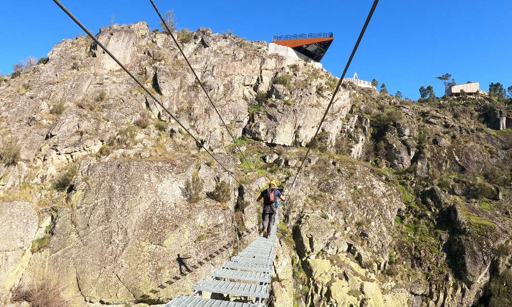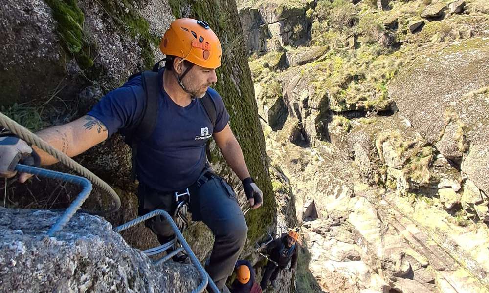 Via Ferrata is a climbing route equipped with metal supports, such as ladders, bridges, cables, and staples, fixed to the rock to facilitate the ascent and ensure safety. It is an outdoor activity that combines hiking and climbing, blending adventure and nature tourism. Those who venture on this via ferrata will be able to explore breathtaking landscapes, always in the company of the Pombeiro River, through hard-to-reach places, in a safe and challenging way.